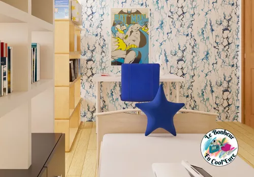 Côté garçon, j’ai opté pour une ambiance bleue, propice au calme et à la concentration.