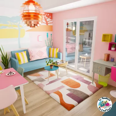 Pour ce projet de décoration d’intérieur à distance, la cliente souhaitait transformer son appartement en un espace féminin, optimisé et résolument coloré, reflétant sa personnalité joyeuse et créative.