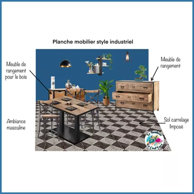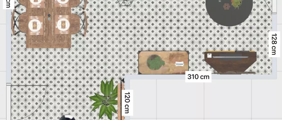 Le mobilier et la circulation ont été optimisés grâce à un plan 3D détaillé, permettant de visualiser clairement les volumes, les perspectives et l’ergonomie du salon. Le sol en carrelage noir et blanc existant, conservé en raison du statut locatif, s’intègre parfaitement à l’ambiance masculine et contemporaine du projet, tout en limitant les coûts de transformation.